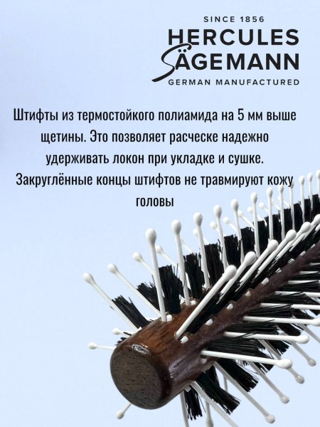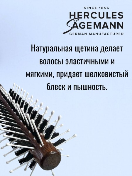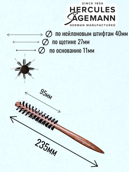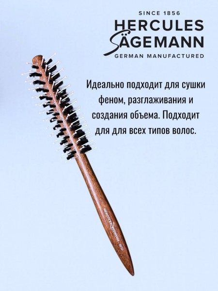 Внешний диаметр **40 мм** (арт. 9030) является универсальным решением для создания стойкого прикорневого объема. Плотная набивка щетины позволяет эффективно вытягивать даже вьющиеся волосы, делая их идеально гладкими. Деревянный корпус обладает антистатическим эффектом и не перегревается от фена, сохраняя внутреннюю влагу волос.
