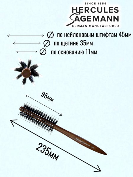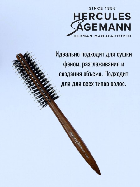 Диаметр **45 мм** (арт. 9026) считается универсальным инструментом для создания естественного объема и мягких локонов. Плотная набивка щетины позволяет эффективно выпрямлять волосы без использования утюжка, сохраняя их внутреннюю влагу. Деревянная ручка эргономичной формы не скользит в руке и не перегревается при длительной работе феном.