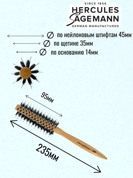 Диаметр **45 мм** (арт. 9226) является оптимальным выбором для создания естественного объема и выпрямления волос средней и большой длины. Плотная набивка щетины позволяет легко моделировать форму, подкручивать кончики и создавать мягкие волны. Благодаря природным материалам, брашинг бережно относится к структуре волос, предотвращая их ломкость и пересушивание.