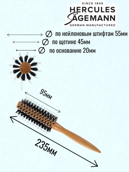 Диаметр **55 мм** (арт. 9227) — это выбор профессионалов для работы с экстра-длинными волосами. Инструмент позволяет достичь эффекта утюжка, разглаживая волосы до зеркального блеска, и при этом создавать роскошный прикорневой объем. Деревянный корпус не накаляется от фена, что предотвращает пересушивание волос и делает процесс укладки максимально бережным.