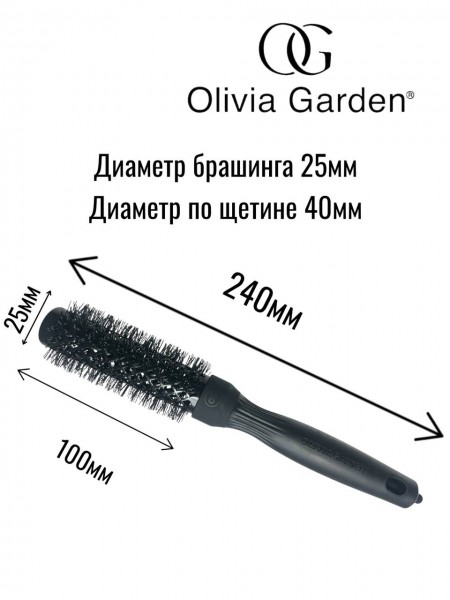 Диаметр 25 мм — это идеальный размер для создания прикорневого объема на коротких волосах и детальной укладки волос средней длины. Специальная антистатическая щетина с мягкими кончиками бережно относится к коже головы и облегчает процесс распутывания прядей во время сушки.