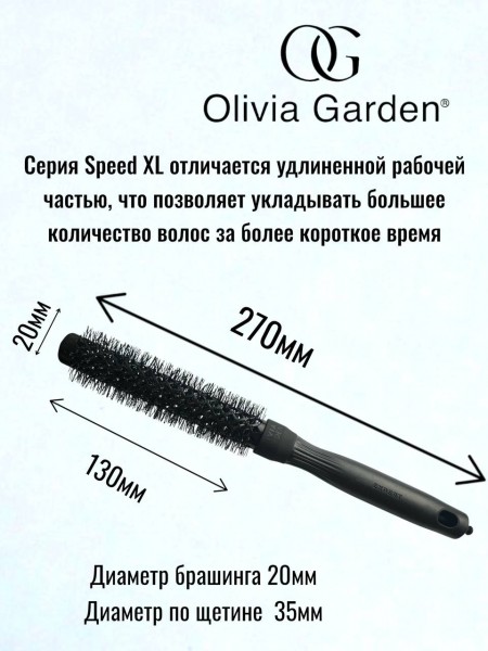 Благодаря удлиненной на **25%** рабочей поверхности, брашинг Speed XL позволяет захватывать более широкие пряди даже при малом диаметре. Турмалин-ионная технология закрывает кутикулу, придавая волосам зеркальный блеск.