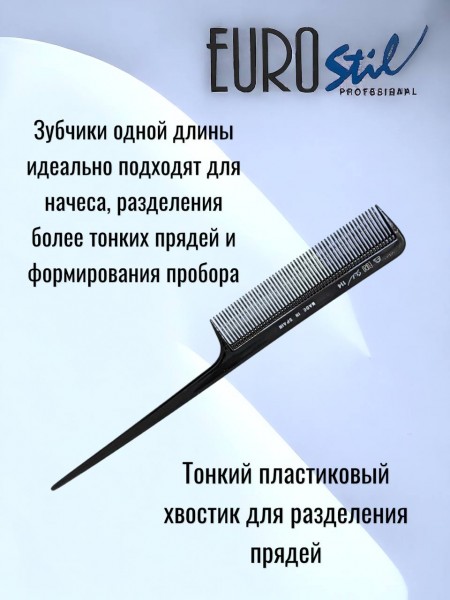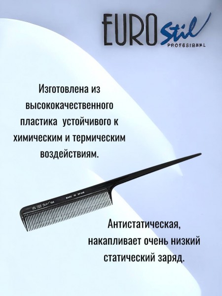 EuroStil 00114 — это профессиональный инструмент длиной 21 см, устойчивый к высоким температурам и воздействию химических составов. Идеально подходит для начеса, прочесывания мелких прядей и создания сложных причесок, требующих ювелирной точности.