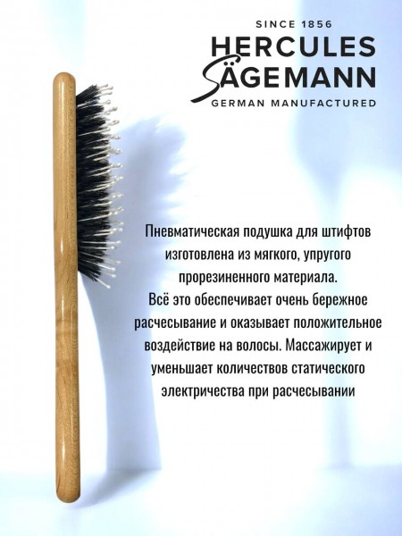 Массажная щетка **Hercules 9244** выполнена из отборного натурального дерева. Это классика парикмахерского искусства, которая сочетает в себе долговечность и заботу о здоровье волос. Пневматическая подушка обеспечивает мягкое нажатие, превращая обычное расчесывание в полноценный SPA-ритуал для кожи головы.