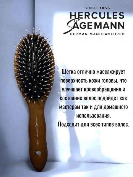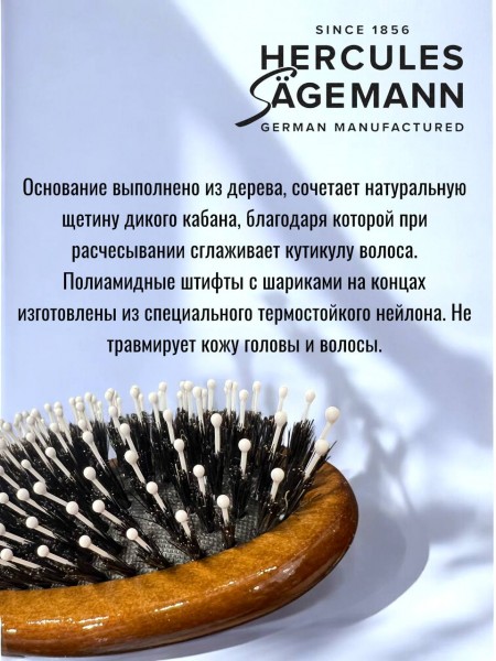 Щетка для волос Hercules деревянная овальная комбинированная щетина (кабан + нейлон)