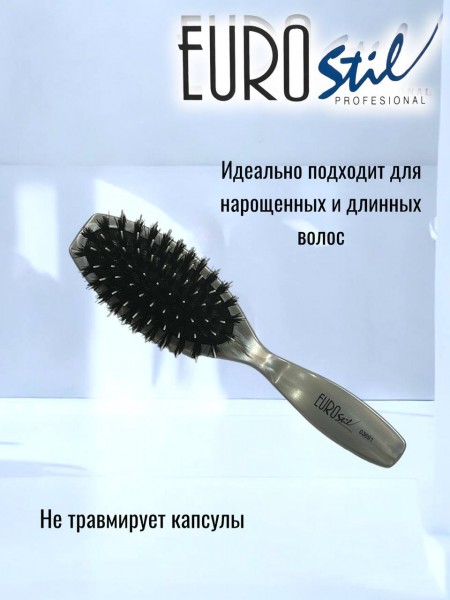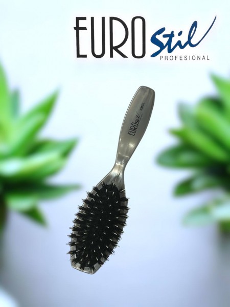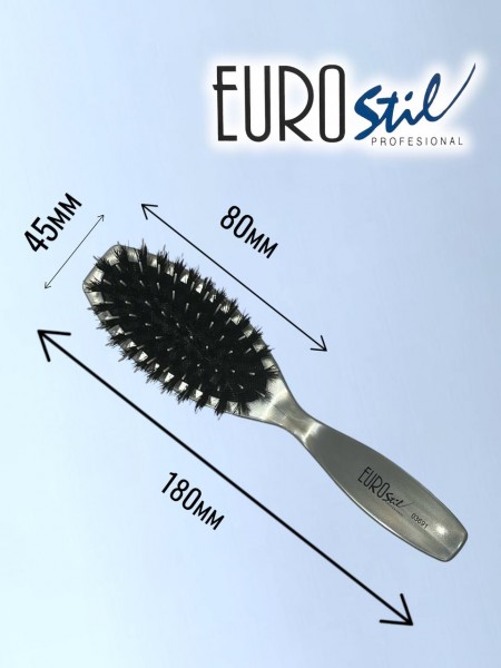 Мини-версия легендарной щетки **EUROstil 03691** создана для тех, кто не готов идти на компромисс в уходе даже вне дома. Сочетание натуральной щетины кабана и гибкого нейлона обеспечивает тот же профессиональный результат — блеск и гладкость — в компактном формате, который легко поместится в небольшую сумочку.