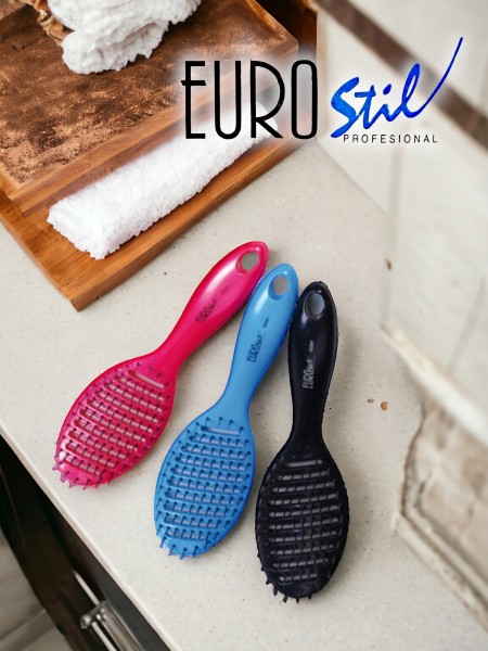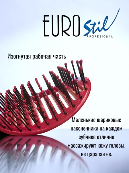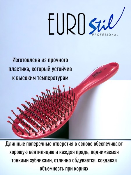 Продувная «горбатая» щетка **EUROstil** — незаменимый инструмент для создания объемных укладок. Уникальный изогнутый дизайн идеально повторяет контуры головы, позволяя максимально поднять волосы от самых корней. Сквозные отверстия в корпусе обеспечивают свободную циркуляцию воздуха, защищая локоны от перегрева и значительно ускоряя процесс сушки феном.