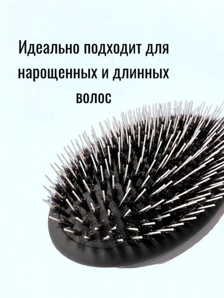 Массажная щетка **PROFI line** специально разработана для бережного отношения к нарощенным и длинным волосам. Уникальное сочетание **натуральной щетины дикого кабана и нейлоновой лески** позволяет мягко распутывать узлы, не повреждая капсулы и сохраняя целостность локонов. Антистатические свойства пластика минимизируют пушистость, делая волосы послушными и сияющими.