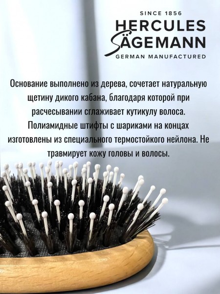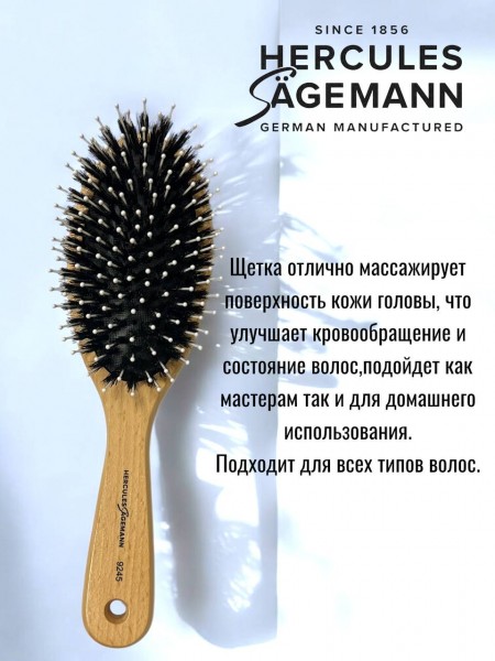 Щетка массажная для волос HERCULES 9245 деревянная овальная с нейлоновой щетиной