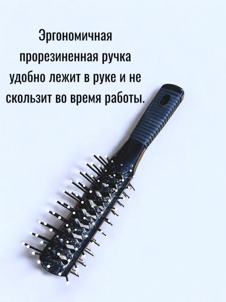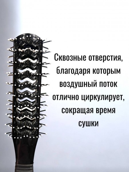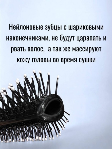 Уникальная двухсторонняя конструкция: короткие зубцы для точного поднятия корней и длинные — для разглаживания полотна волос. Защитные шарики на концах щетины деликатно массируют кожу головы, не царапая её.