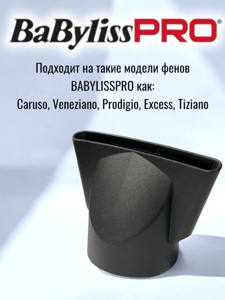 Совместимость: подходит к фенам с посадочным диаметром 44 мм (включая популярные модели BaByliss PRO серии Caruso, Veneziano, Black Star, Prodigio, Excess и др.).
