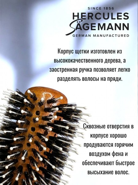 Деревянная основа брашинга обеспечивает легкость и быстрый прогрев. Специальная обработка щетинок разглаживает и увлажняет кутикулу. Брашинг подходит для выпрямления, создания прикорневого объема, а также мягко массирует кожу головы.