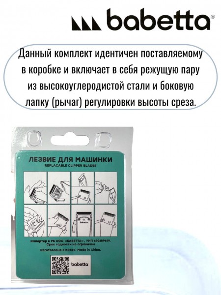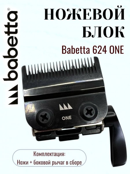 Профессиональный ножевой блок **Babetta 624 ONE** в полной сборке — это готовое решение для восстановления вашей машинки. Данный комплект **идентичен поставляемому в коробке** и включает в себя режущую пару из высокоуглеродистой стали и **боковую лапку (рычаг)** регулировки высоты среза. Идеальный баланс заточки позволяет быстро и чисто снимать основную массу волос, сохраняя мягкость хода и предотвращая перегрев блока.