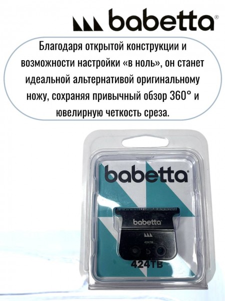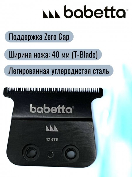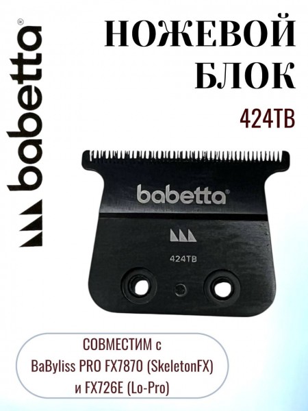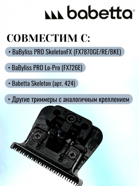 Сменный Т-образный нож **Babetta 424TB** — это высококачественный стальной блок, обеспечивающий безупречную точность окантовки. Главное преимущество модели — **полная совместимость** с триммерами **BaByliss PRO FX7870 (SkeletonFX)** и **FX726E (Lo-Pro)**. Благодаря открытой конструкции и возможности настройки «в ноль», он станет идеальной альтернативой оригинальному ножу, сохраняя привычный обзор 360° и ювелирную четкость среза.