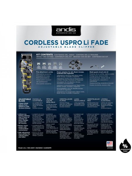 Комплектация Andis Nation Cordless ENVY LI Машинка для стрижки Andis Cordless Nation Crown.