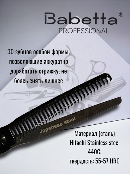 Профессиональные филировочные ножницы Babetta 317 — это результат совместной работы с ведущими мастерами. 30 высокоточных зубьев позволяют создавать мягкие переходы и текстурировать пряди без «ступенек».