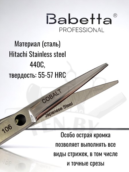 Meta Description: Профессиональные матовые ножницы Babetta арт. 106 размера 5.5 дюймов. Японская сталь Hitachi 440, конвекс-заточка, эргономичная ручка. Идеальны для стрижки волос, бороды и бровей.